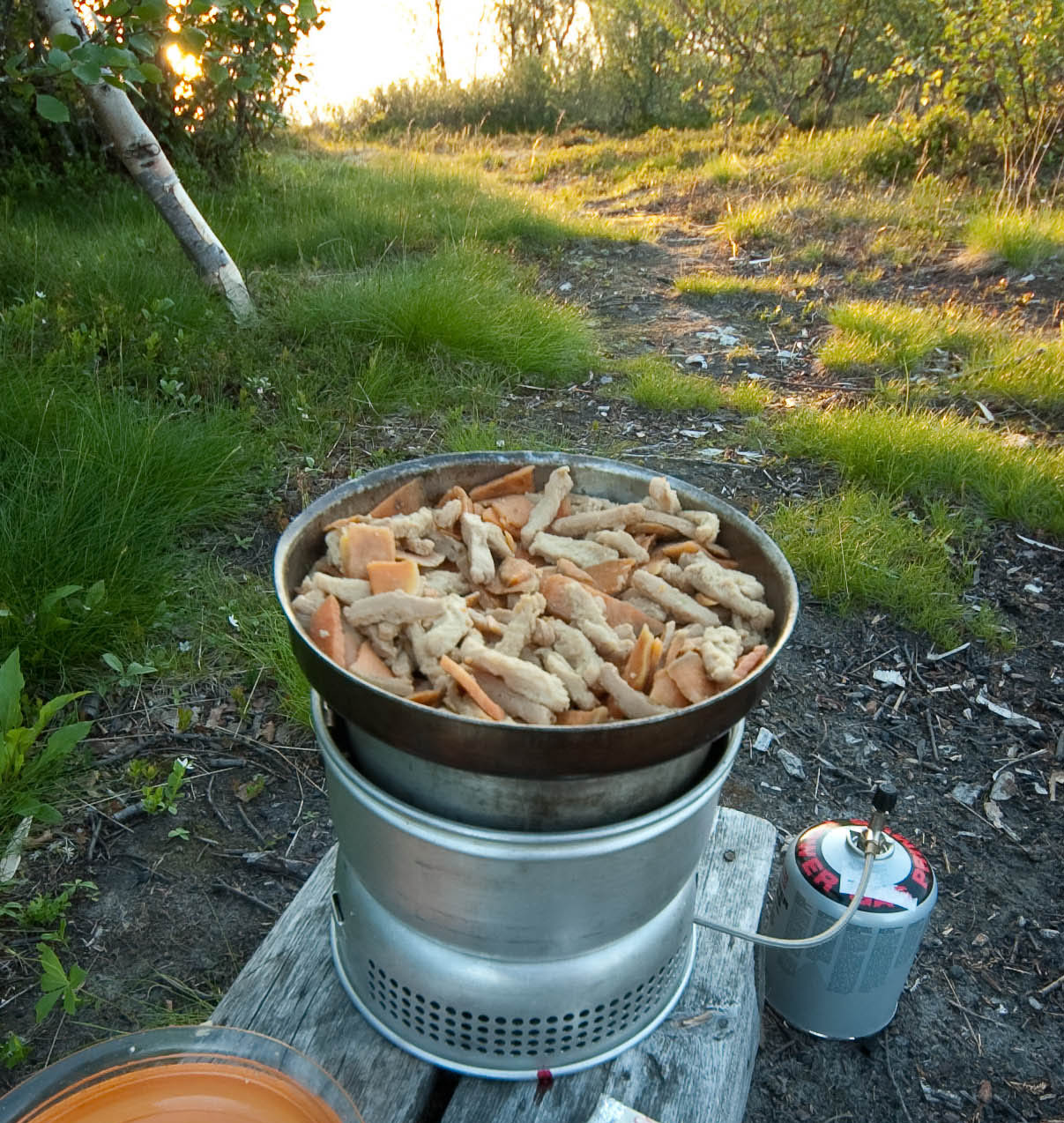 Astiat: Tarvitset trangian paistinpannun, yhden kattilan, kahvipannun (veden keittoon) sekä kaksi purkkia liottamiselle (toinen voi olla minicrip).