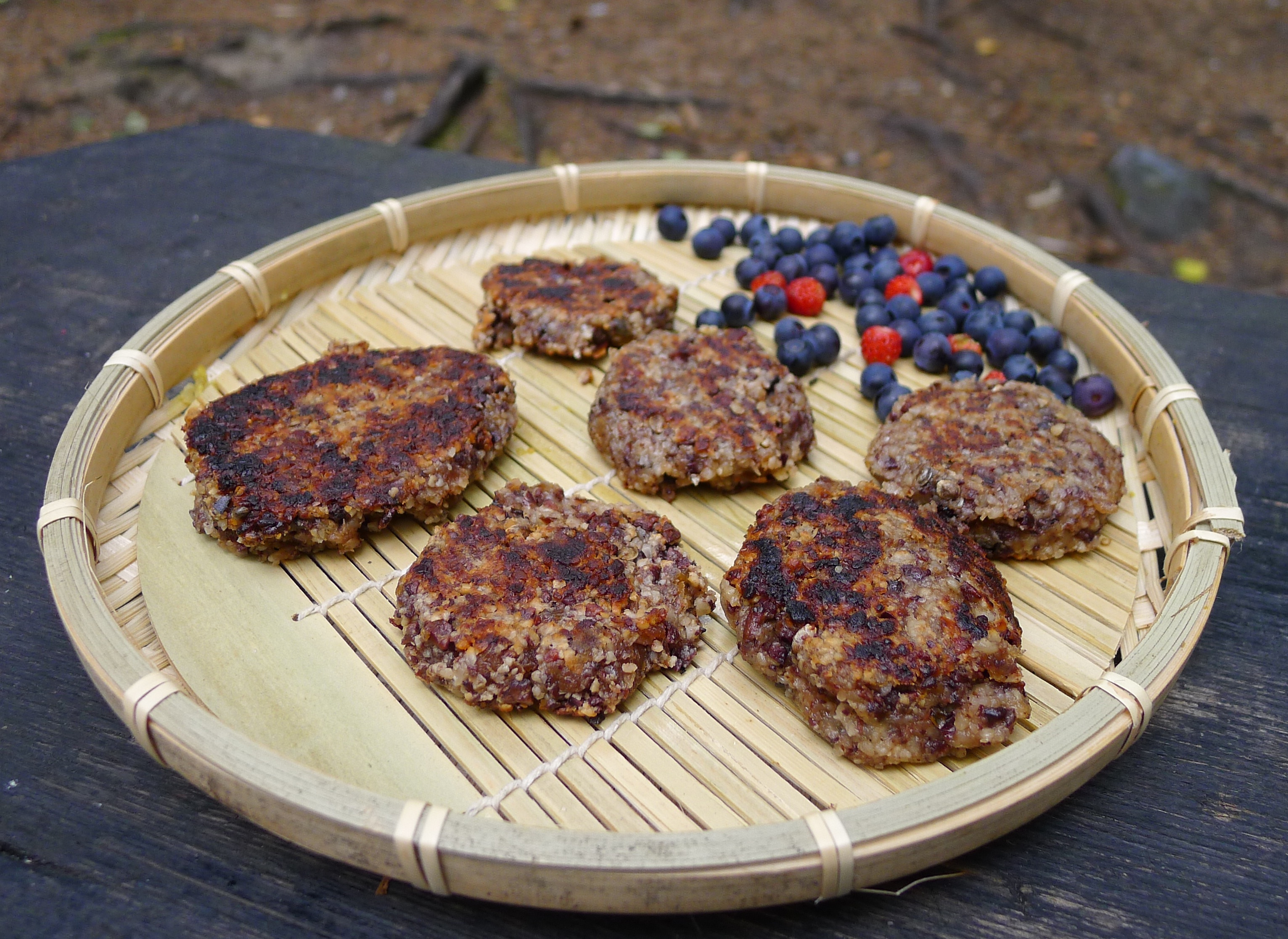 Innostuin kehittelemään ravintorikkaita suklaakeksejä. Ennen eräkäyttöä testasin reseptiä kotona. Kauniita ei tullut; näyttävät pieniltä pihveiltä. Mutta odotas vaan kun saat suuhusi! Kuumia suklaakeksejä! Söin kaikki ensimmäiset testikappaleet suoraan pannulta – kaikki ihan yksin. Ajattelin annoksen riittävän kuitenkin kahdelle.