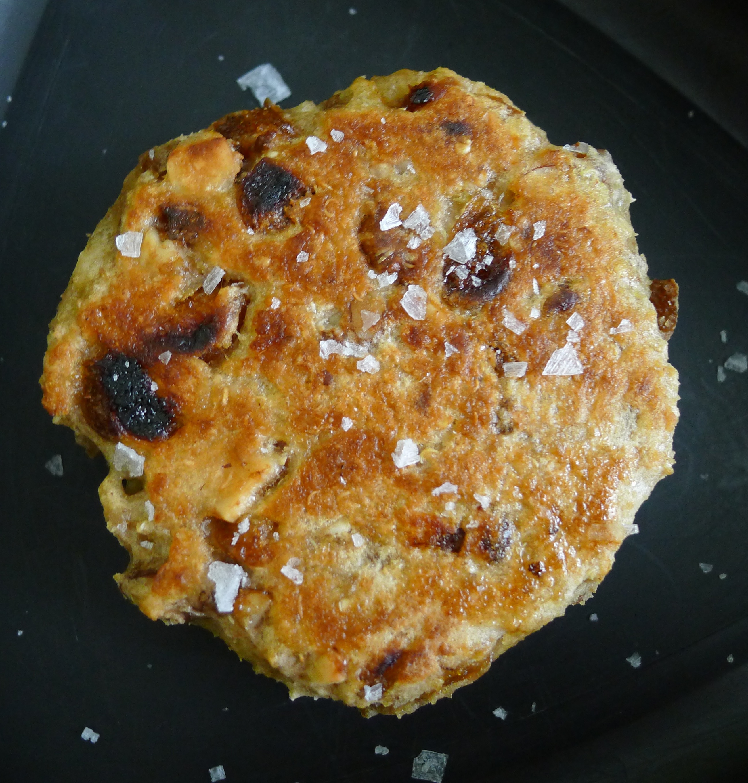 - Jaa taikina neljään osaan. Paista neljä noin 1 cm paksuista sämpylää pienellä tulella kannen alla. Käännä, kun sämpylä on selvästi hieman kohonnut.