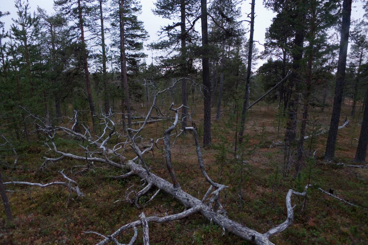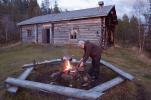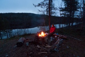 Illalla löysimme metsästä Sompion tuvan läheisyydestä runsaasti tervaksia – ja nuotio rätisi hienosti. Uudelle kirveelle tuli käyttöä.