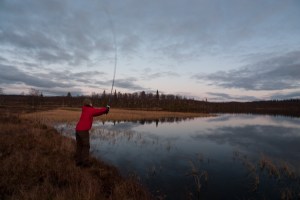 Tiistai-iltana ehdin ottaa kalastusvälineet esille sen yhden ainoan kerran – mato-ongen ja perhon yhdistelmän, joka ei toiminut matalassa rantavedessä. Liian lyhyt siima kun ei ole kelaa. Pari kalaa kävi pintomassa kauempana järven keskellä.