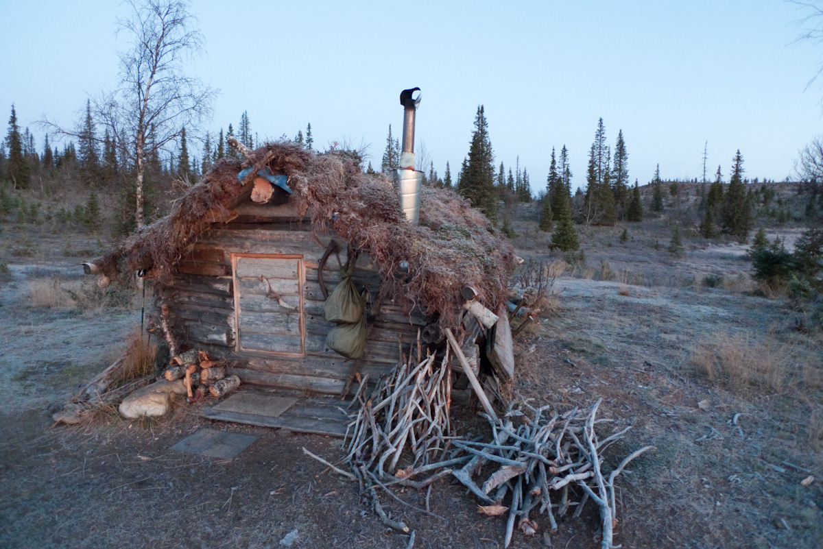 La-vun kämppä lämpeni nopeasti ja saimme kuivattua edellisen yön jäljiltä kosteat makuupussimme. Kämpille osui samaan aikaan Juha, joka nukkui ulkona, koska sisään mahtui vain kaksi.