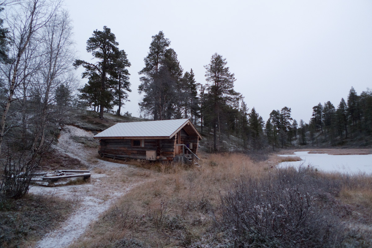 Suivakkojärven autiotupa – kyllä, ehdimme perille ennen pimeää. Heräsimme keskiviikkona 6:30, lähdimme kävelemään 9:00, pidimme 50min lounastauon (sienirisottoa ilman juhlallisuuksia) ja löysimme Suivakkojärven autiotuvan 18:20.