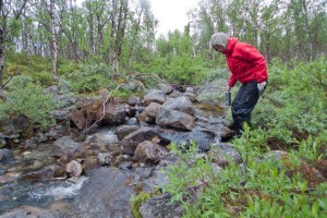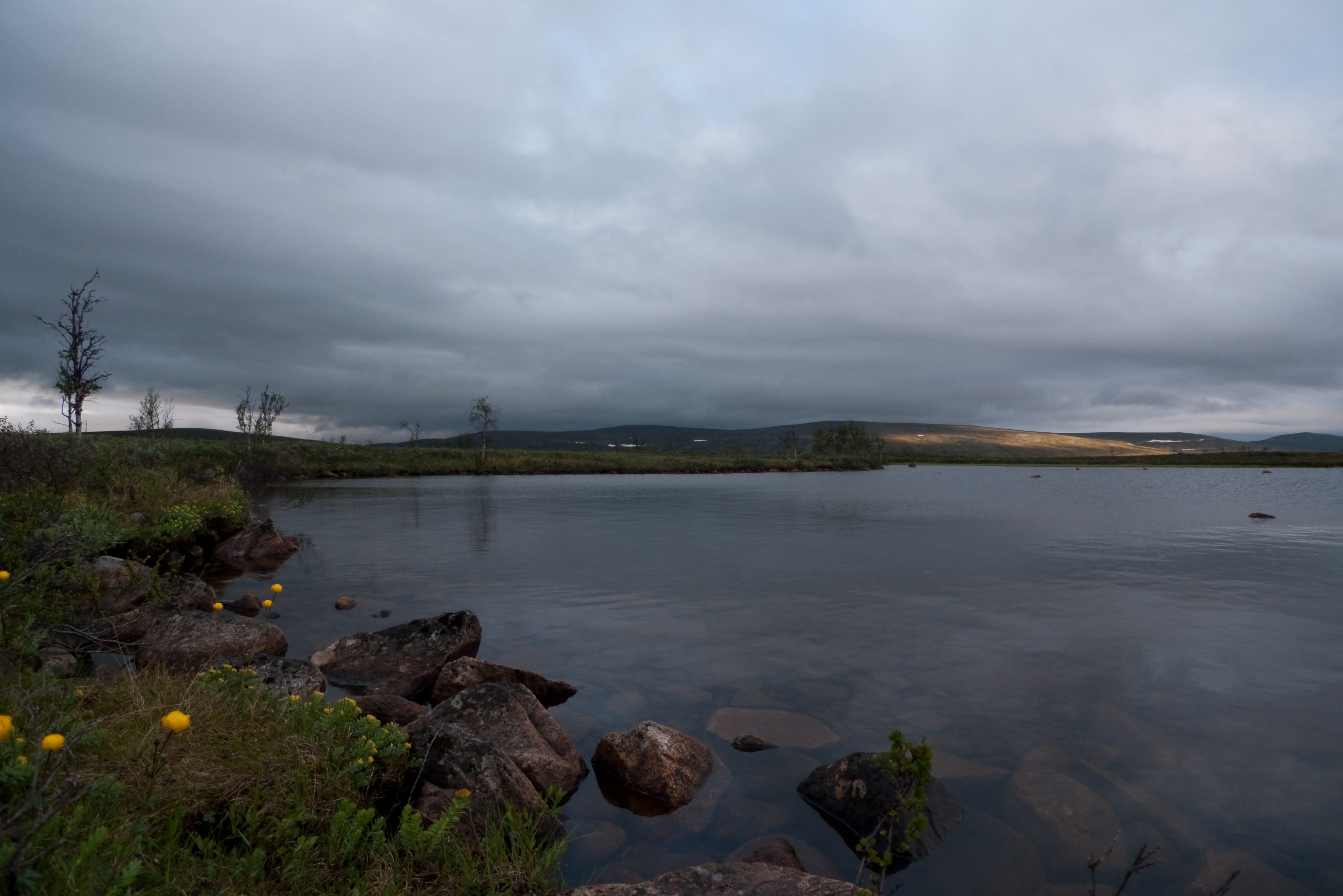 Olimme suunnitelleet lähtevämme keskiviikkona liikkeelle ”aamulla” mutta päivä kului valokuvaten ja kalastaen. Pääsimme liikkeelle puoli kuudelta illalla ja tallustimme kohti Pitsijokea, jossa ”lounastimme” kahdeksalta illalla. Epäilimme etukäteen Pitsijoen ylitystä vaikeaksi, mutta joen yli pääsi puurajan