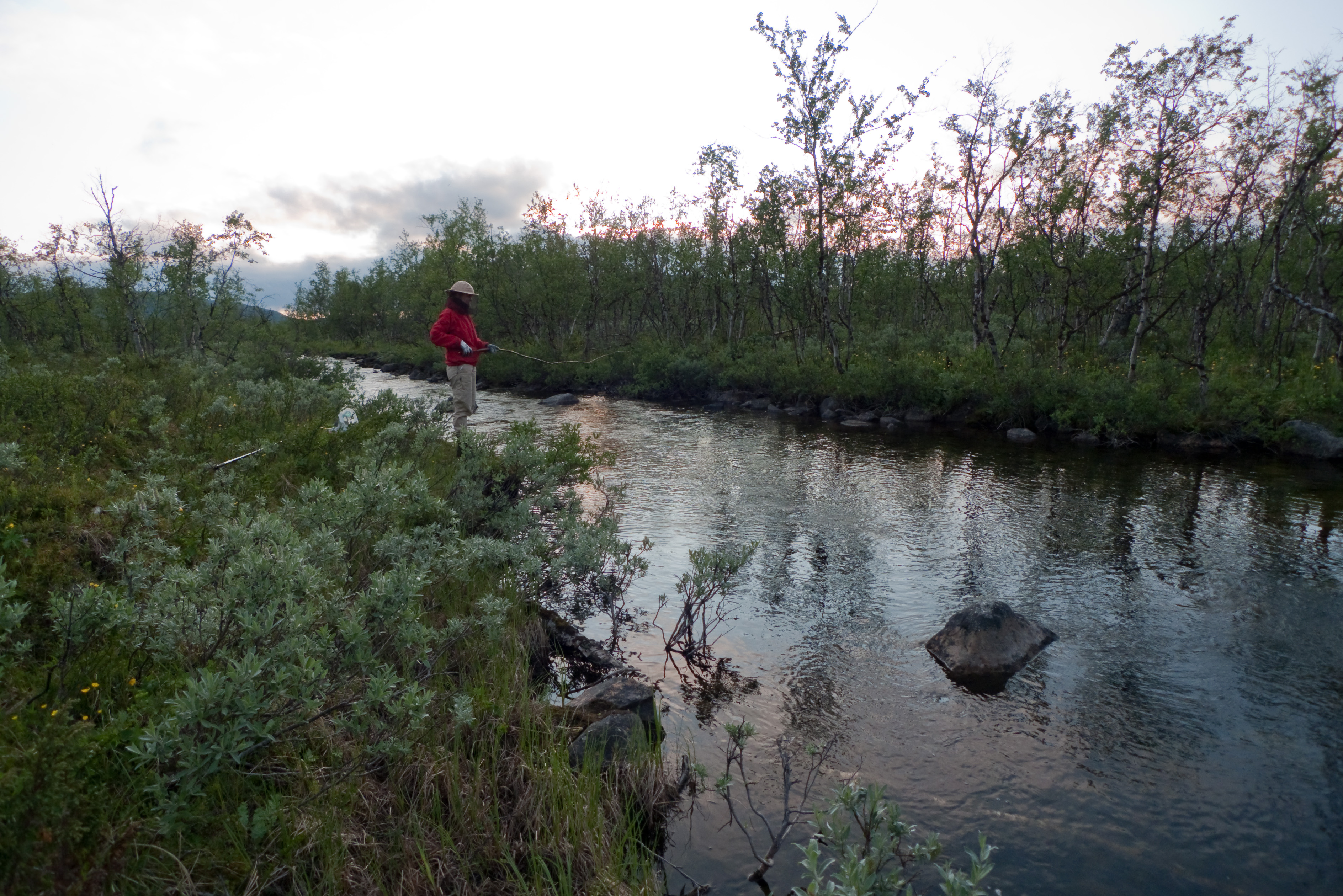 Tiistai kului rennosti tuvalla ja sen ympäristössä kävellen. Harjoittelin perhojen heittoa koko päivän tuloksetta. Vesi oli kirkasta ja kaloja näkyi usein. Yksi harri söi perhon ja pääsi karkuun koska solmu oli huono. Matkakumppanini nukkui päiväunet ja joogasi. Illalla saimme pienen harrin. Paistoimme sen voissa ja nautimme kantarellikastikkeen kera.